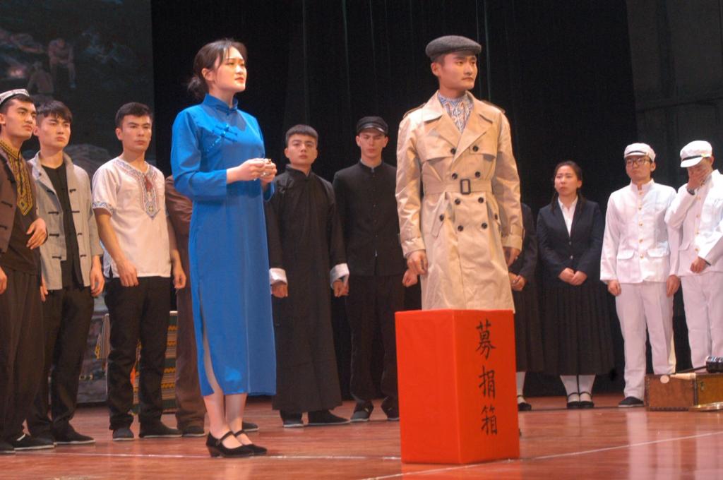 为深入学习领会、全面贯彻落实习近平总书记在纪念五四运动100周年大会上的重要讲话精神,缅怀五四先驱崇高的爱国情怀和革命精神,重温共产党人在新疆的革命奋斗历程,继承发扬天游线路测速登录中心“抗大第二”的红色基因,大学党委统一部署,组织安排了以“传承红色基因 祝福伟大祖国”为主题的系列宣传活动。作为系列活动的开篇,5月4日天游线路测速登录中心林基路艺术剧社在大学生科技文化活动中心演出了新版红色校园历史话剧《我们正青春年少》。