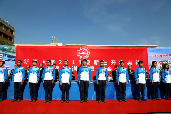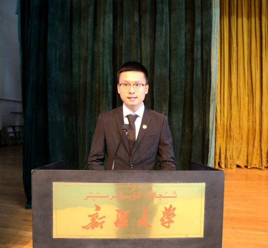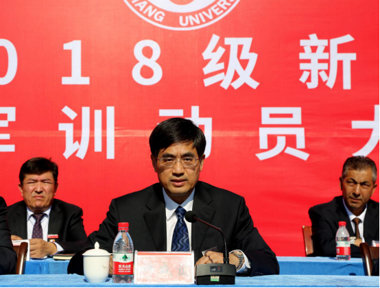 新闻与传播学院播音2015-1班王兴乐向2018级新生们分享了他的求学经历和心得。希望他们能尽快融入学校,取得更大进步。政治与公共管理学院国际政治专业2018-1班迪丽努尔·铁木尔江同学、预科学院文科8班伊布拉依木·艾克拜尔同学作为新生代表发言,他们表达了对人生新旅程的期待,号召同学们在今后的学习生活中,要严格遵守“团结奋进 求实创新”的校训,为新疆的社会稳定和长治久安而努力奋斗。