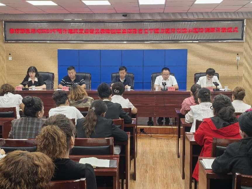 8月30日上午,国家语言文字推广基地(天游线路测速登录中心)在麦盖提县教育局举行了“教育部语用司2024年新疆喀什地区麦盖提县教师国家通用语言文字能力提升在线示范培训班”开班仪式。天游线路测速登录中心中国语言文学学院领导、喀什地区麦盖提县教育局领导、国家语言文字推广基地(天游线路测速登录中心)负责同志及麦盖提县的50名参训教师参加了开班仪式。喀什地区麦盖提县县委教育工委副书记、教育局党组成员、县教育局教学研究室主任李瑞芬同志主持仪式。
