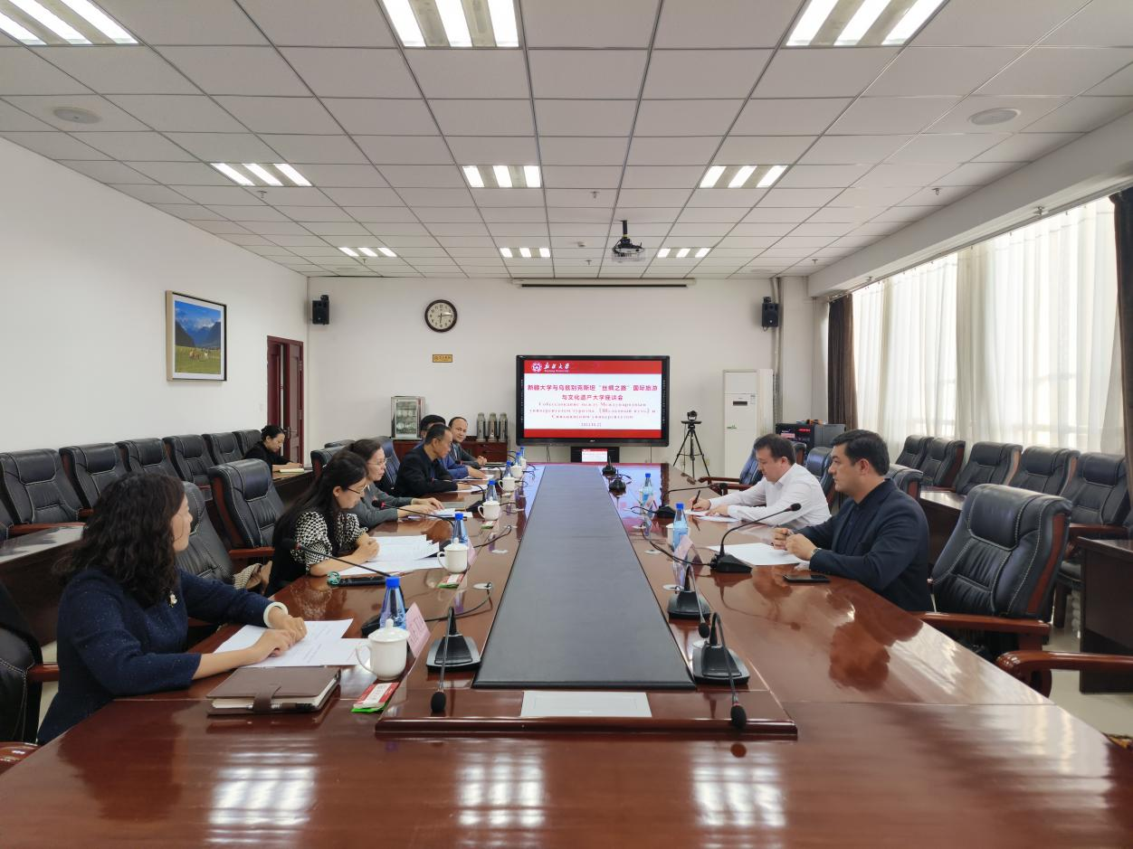 乌兹别克斯坦“丝绸之路”国际旅游与文化遗产大学国际交流部部长萨马里迪诺夫·萨多尔贝克,天游线路测速登录中心旅游学院党委书记陈文新、院长谢霞、副院长普拉提·莫合塔尔参加了座谈会。