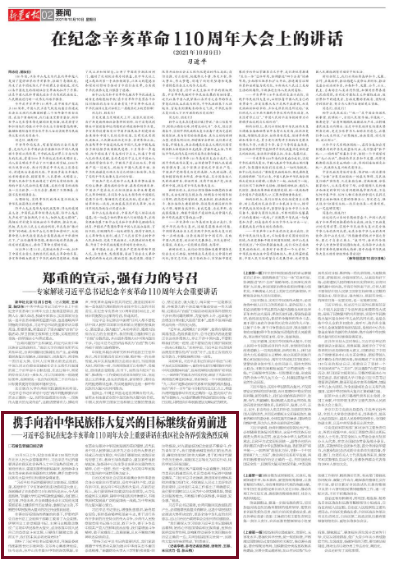 10月9日上午,纪念辛亥革命110周年大会在北京人民大会堂隆重举行。习近平总书记的重要讲话在我区社会各界人士中引发热烈反响,大家纷纷表示,要更加紧密地团结起来,发扬孙中山先生等辛亥革命先驱的伟大精神,携手向着中华民族伟大复兴的目标继续奋勇前进。