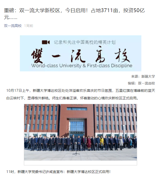 双一流高校公众号发布新闻报道天游官网博达校区正式使用