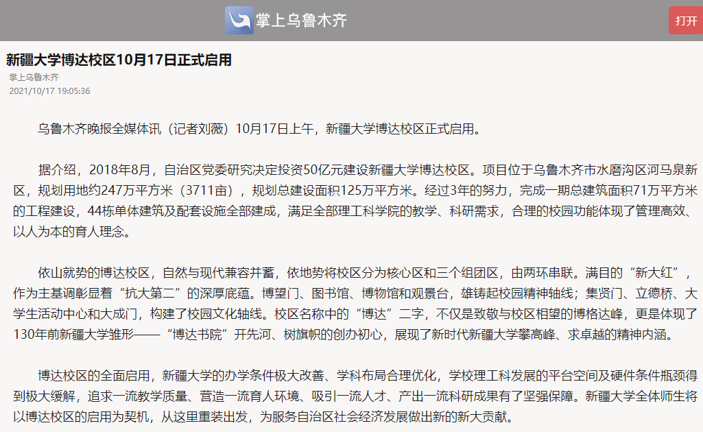 掌上乌鲁木齐发布新闻报道天游官网博达校区正式使用