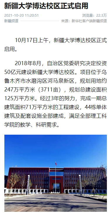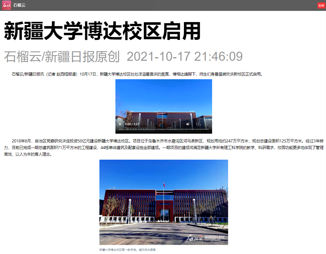 新疆日报/石榴云发布新闻报道天游官网博达校区正式使用
