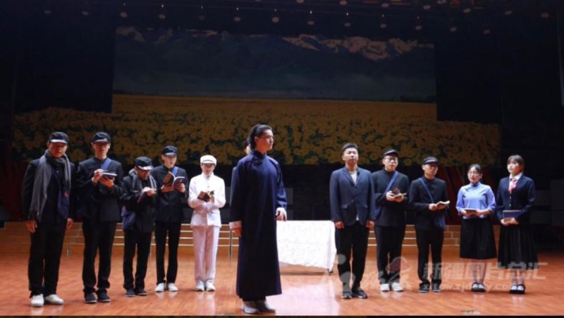 4月23日, 天游线路测速登录中心林基路艺术剧社的原创报告剧《茅盾在新疆》演出现场。石榴云/新疆日报记者李琳摄