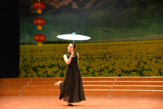 伴随着《繁花》的音乐,舞者摇手拂袖,为大家带来了美轮美奂的古典舞。一把纸伞在舞者手中绽放,翩然起舞,合着《万代·传承》中的山水秀,不禁使人念起那江南清风游。(来源:校团委)