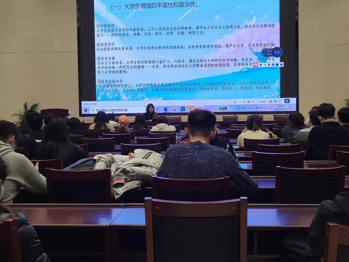 此次培训共在三校区开设14场次,主要围绕大学生心理健康与心理委员职责、大学生人际交往、大学生情绪管理、大学生就业心理等四个主题展开,经过心理中心全体专职心理教师为期5天的集中授课,培训工作圆满完成。