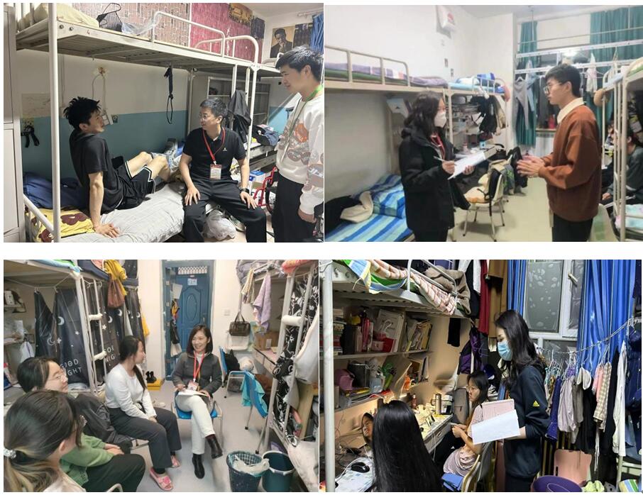 强化学生管理,营造文明社区。假期期间,学生社区各宿舍楼按照“放假不放松”的工作主线,重点做好楼内学生教育管理工作,部领导带头深入学生社区开展夜间走访检查,严查违纪违规行为,着力营造和谐文明的宿舍风貌,持续巩固“文明宿舍”创建成果。各校区每晚组织辅导员、自律会、宿管会加大宿舍走访和抽检比例,收集学生问题反馈,提醒同学们加强假期期间用电、防火安全,及时化解问题矛盾。