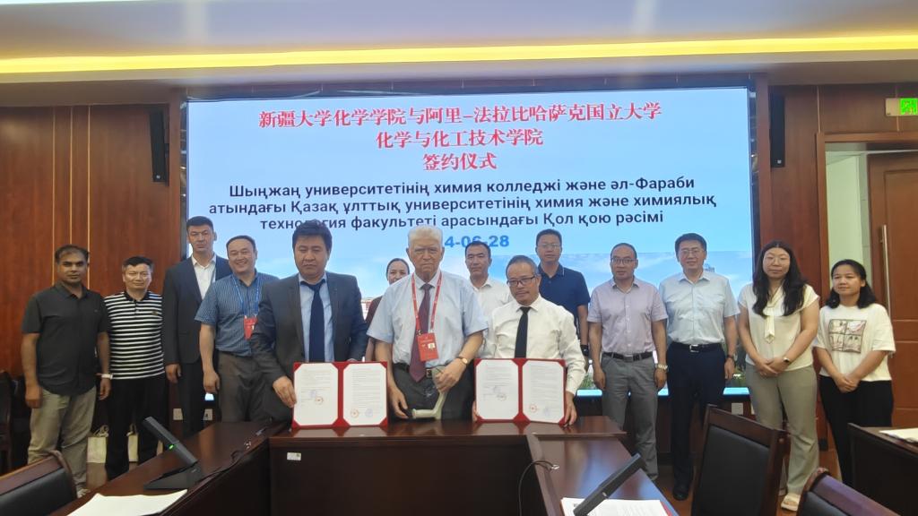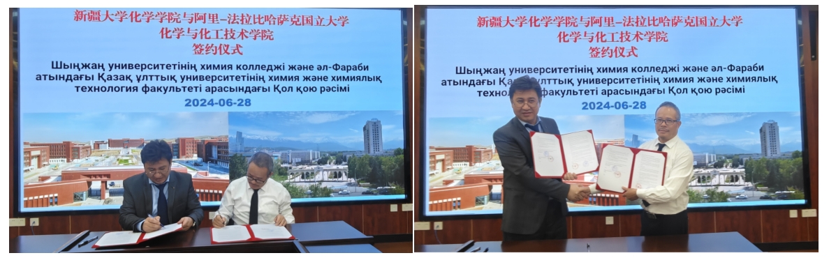 6月28日上午,天游线路测速登录中心化学学院与阿里-法拉比哈萨克斯坦国立大学化学与化工技术学院在博达校区举行了签约仪式。