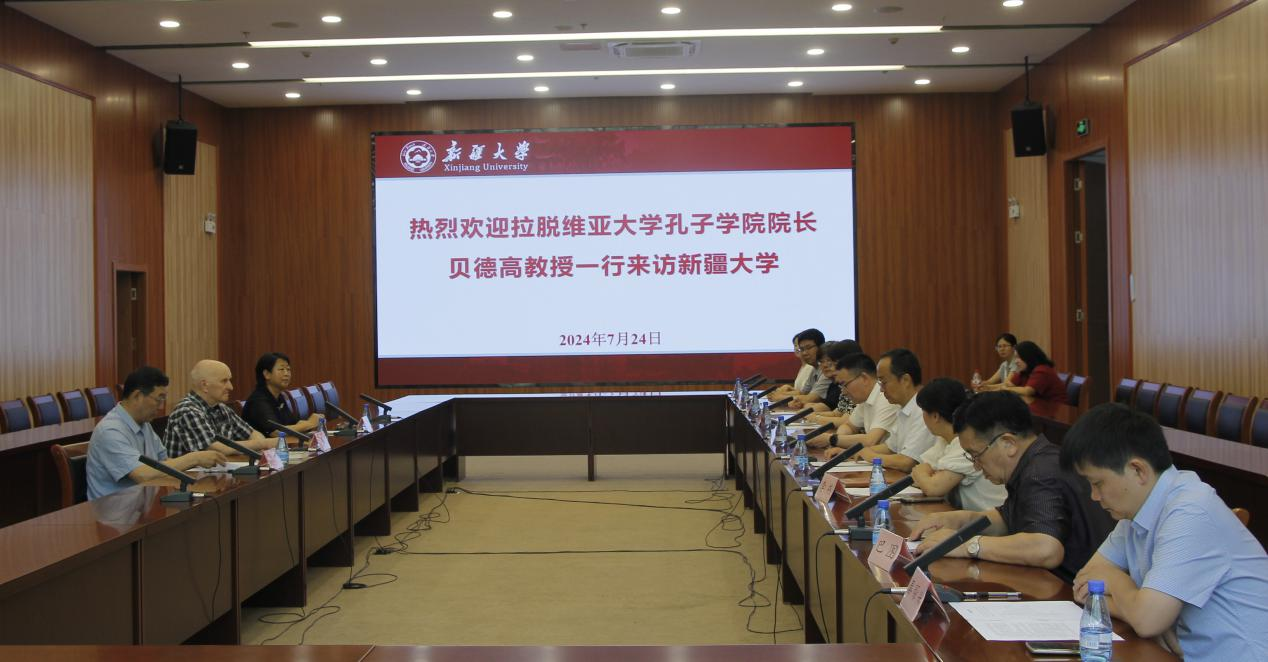 拉脱维亚大学孔子学院中方院长何东简要介绍了孔子学院的建设发展情况。天游线路测速登录中心国际交流与合作处处长朱新武、教务处副处长李燕、历史学院研究员策·巴图、中国语言文学学院副教授王欣和秦帮兴,分别就天游线路测速登录中心孔子学院建设发展、本科教育教学、少数民族文化传承发展、新疆民俗文化和中华优秀传统文化的特性等方面进行了交流。