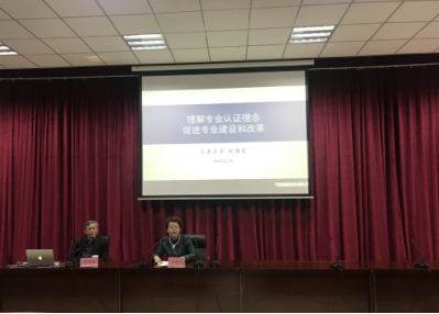 相关工科学院的领导,其中启动工程教育专业认证项目的11个专业(化学工程与工艺、生物工程、食品科学与工程、机械工程、电气工程及其自动化、电子信息工程、计算机科学与技术、软件工程、建筑学、土木工程、资源勘查工程专业)的负责人及骨干教师以及其他工科专业负责人等50人参加了讲座,讲座由教务处处长贾丽霞主持。