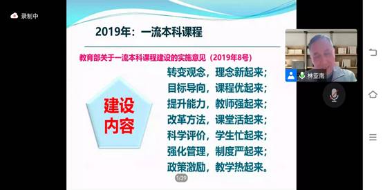 讲座伊始,林亚南首先为我们介绍了“四有”好老师的标准,即有理想信念,有道德情操,有扎实学识,有仁爱之心,并结合自身教学实例,分别对“四有”进行了详细的阐释。紧接着林亚南又详细的介绍了2019年教育部关于一流本科课程建设的实施意见和教学的基本原则,如提升高阶性,突出创新性,增加挑战度,他强调教师的授课要注重培养学生解决复杂问题的综合能力和高级思维,让学生在刻苦学习的过程中收获能力和素质提高的成就感。