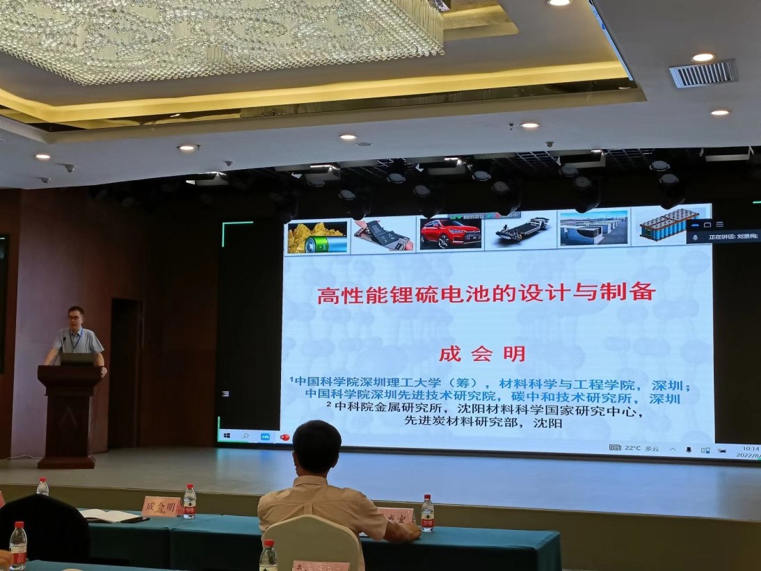 中国科学院院士成会明院士以“高性能锂硫电池的设计与制备”为题做学术报告。他展示了碳纳米管、石墨烯等在锂硫电池领域中广阔的的应用前景,重点阐述了单原子金属催化剂与多硫化物杂化,展望了石墨烯、碳纳米管以及单原子金属催化剂在能量存储与转换、光电器件等领域的应用前景与挑战。报告内容丰富精彩,激发了与会代表的强烈兴趣,与会代表与成院士就碳纳米管在锂硫电池的应用等问题展开了热烈的讨论。