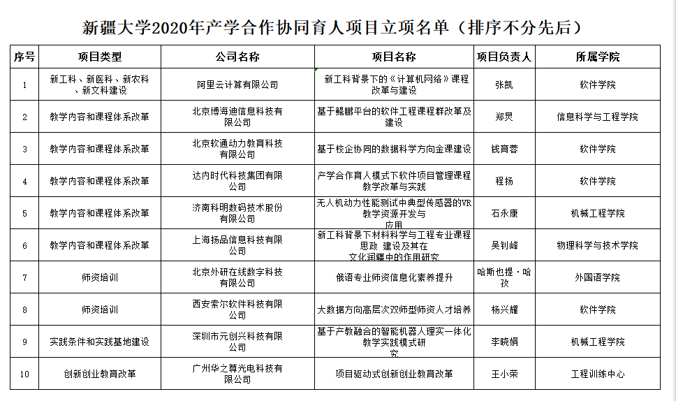 根据教育部高等教育司发布的《2021年第一批产学合作协同育人项目立项名单的通知》,天游官网共有10项项目获批立项,其中新工科、新医科、新农科、新文科建设1项;教学内容和课程体系改革5项;师资培训2项;实践条件和实践基地建设1项;创新创业教育改革1项。